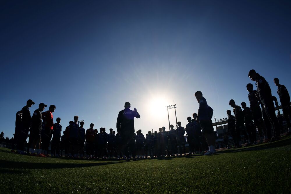 Das offizielle Foto des ersten Camp-Tages, das unter dem Titel „FOCUS ON“ aufgenommen wurde, zeigt dieses eine Bild. Ein Kreis, der sich um den in seine zweite Saison als Trainer gehenden Rikizo MATSUHASHI bildet. Diese Szene ist seit der letzten Saison alltäglich geworden, aber in dieser Saison wird es darauf ankommen, wie sehr die „Rikizo-Farbe“ verstärkt werden kann. Der Kampfgeist des Trainers ist auch in diesem Bild spürbar.