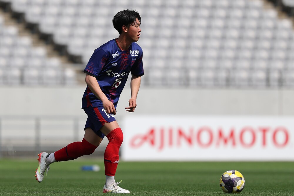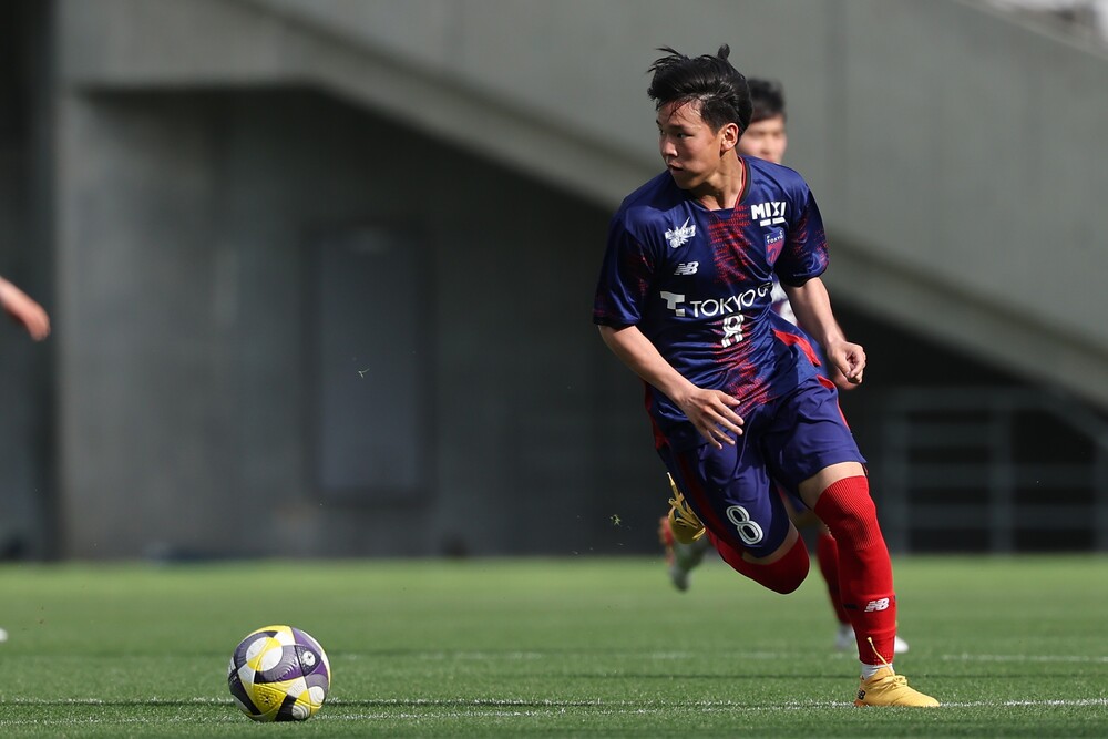 Kaede SUZUKI. Geboren am 5. Juni 2007, 18 Jahre alt. Ein echtes Kind der blau-roten Farben. Bis zu seiner Zeit bei FC Tokyo U-15 Musashi war er hauptsächlich als Innenverteidiger aktiv, doch seit seinem Aufstieg in die U-18 hat er auch als defensiver Mittelfeldspieler gespielt, wodurch sich sein Spielumfang erheblich erweitert hat. Seine präzise Schusstechnik, mit der er sowohl kurze als auch lange Pässe genau spielen kann, sowie seine Fähigkeit, auch in der letzten Linie ohne Scheu den Ball zu holen, sich am Spielaufbau zu beteiligen, seine hohe Technik und sein kühler Urteilsvermögen sind Eigenschaften, die auch auf professionellem Niveau voll überzeugen.