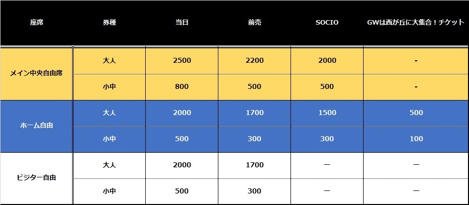 Anlässlich der Spiele am Do., 03.05. (Feiertag) gegen Iwate Grulla Morioka und am So., 06.05. gegen Gainare Tottori bieten wir ausschließlich für SOCIO- und Club-Support-Mitglieder die vergünstigten „Golden Week – Großes Treffen in Nishigaoka!“-Tickets zum Verkauf an (limitiert auf die ersten 2.000 Stück).