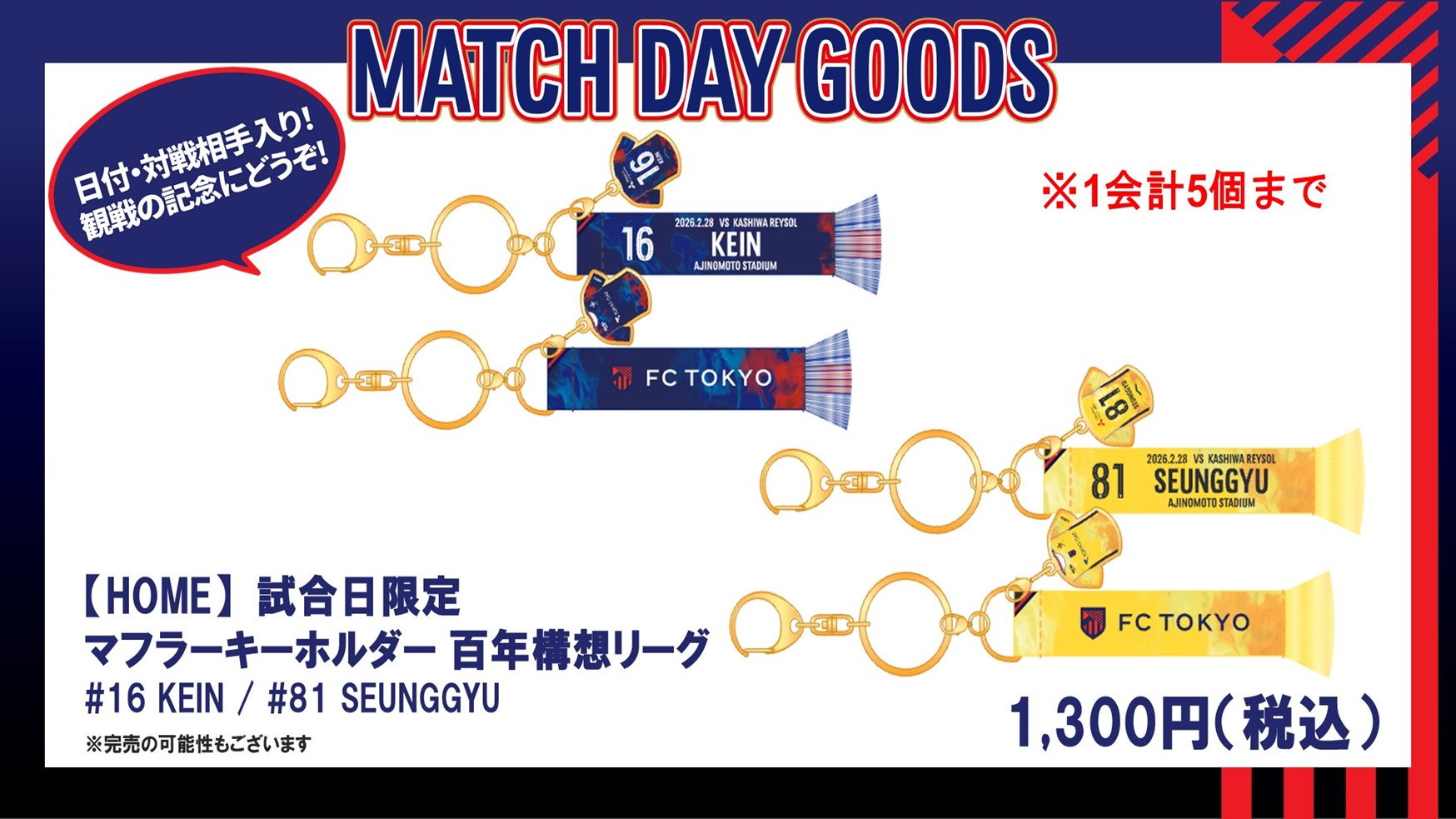 Für diejenigen, die Banner (Flaggen, Transparente) im Voraus vorbereiten möchten, bitten wir, sich 120 Minuten vor Öffnung des Stadions auf dem Gelände beim „Euro Sports Ajinomoto Stadium Shop neben dem dreieckigen Platz“ zu versammeln. Auch bei der Vorbereitungsgruppe wird eine Temperaturmessung durchgeführt; Personen mit einer Temperatur von 37,5 Grad oder höher erhalten keinen Zutritt, bitte haben Sie Verständnis dafür. Außerdem ist das Anbringen von Bannern (Flaggen, Transparenten) auch nach der Öffnung möglich.