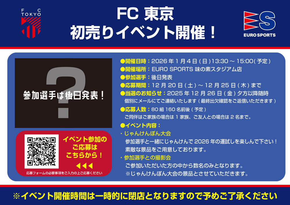 The annual New Year event at the Euro Sports Ajinomoto Stadium Store will be held again in 2026.