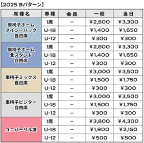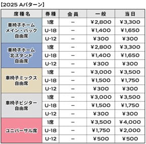 * Regarding the price list for events held at the Japan National Stadium, we will announce it again on the official FC Tokyo website.