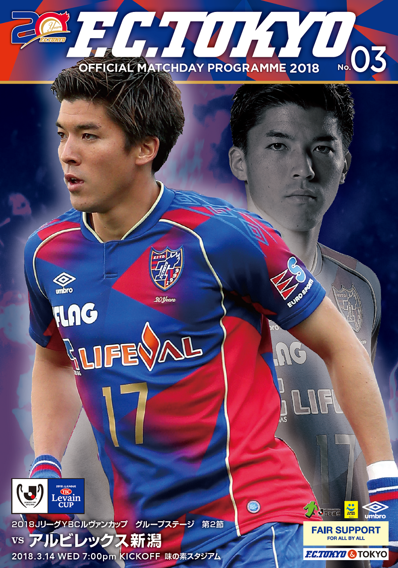 3月14日(水)に行なわれる2018JリーグYBCルヴァンカップ第2節 アルビレックス新潟戦において、オフィシャルマッチデープログラム(MDP)を販売いたします。ぜひ試合前にご購読ください!