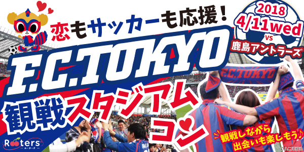 クラブスポンサー「Rooters」にて「~平日サッカー観戦で恋活~【FC東京観戦コン】VS鹿島アントラーズ in味の素スタジアム」が開催されますので、お知らせいたします。