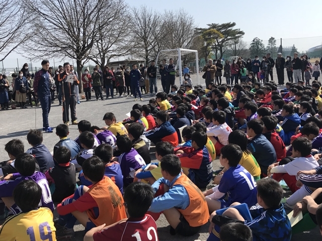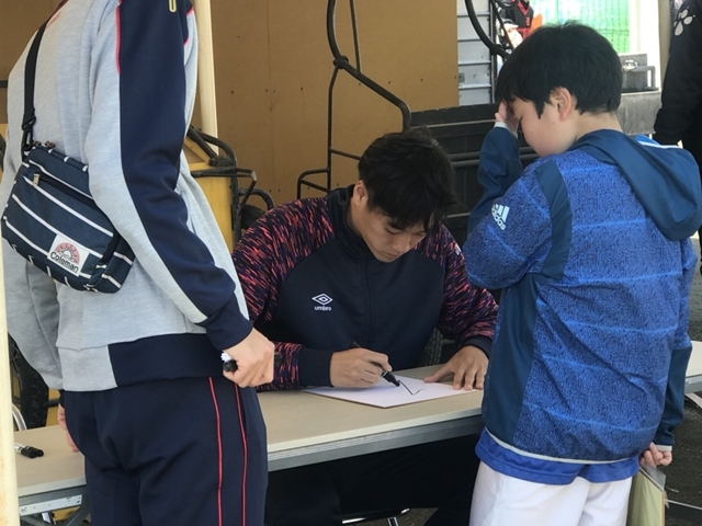 先日、府中市少年サッカー連盟の主催で行われた「平成29年度6年生卒業記念大会」に、矢島輝一選手が参加し、子どもたちの前での挨拶とサイン会を実施しました。