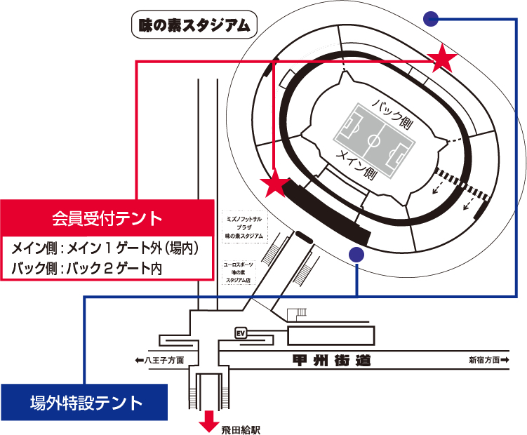 (1)試合当日、スタジアム場外にクラブサポートメンバー入会受付テント(メイン、バック)を設置いたします。