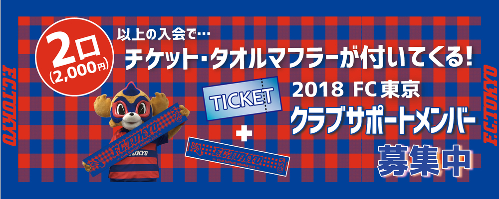 ファンクラブU-20会員(年会費1,000円/1998年1月1日生まれ以降の方)の方は、当日入会した方に限り当日券を割引販売いたします。ご入会いただくと、オンラインにてホームゲーム(2018明治安田生命J1リーグ戦・ルヴァンカップ)全試合のホーム自由席(大人)を800円(通常2,700円)にてご購入いただけます。20歳以下の方は必見!!なお、ファンクラブU-20の入会は、ファンクラブU-20受付(場外メイン・バック)および会員受付テント(場内メイン・バック)にて受付しております。ぜひ、お得な観戦でFC東京をたくさん応援してください。
