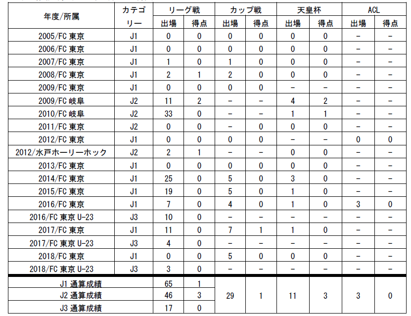 2004-2006 FC東京U-18※第二種登録選手としてトップチームに帯同(2005、2006)