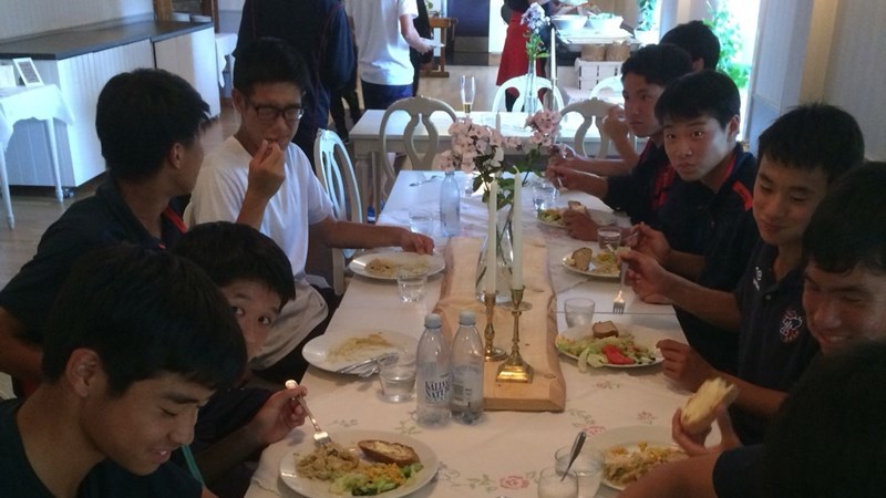 それでも選手たちは特に疲れた様子も見せず、元気に夕食を摂る。
