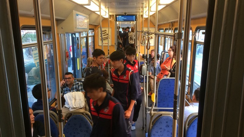 その後、夕食を摂りに試合会場近くのレストランまでトラム(路面電車)で移動。