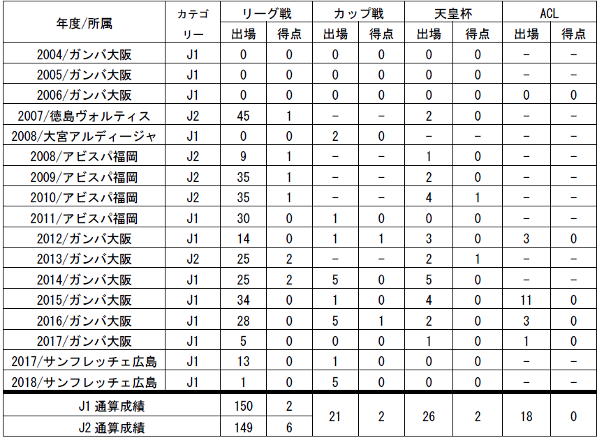 □出場記録 (2018年7月18日現在)