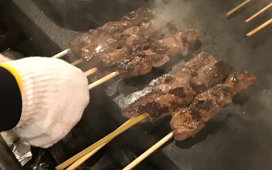 東京産小笠原諸島の塩を使った、ジューシーな牛ハラミ串です!!東京Eマーク海の精あらしお使用。