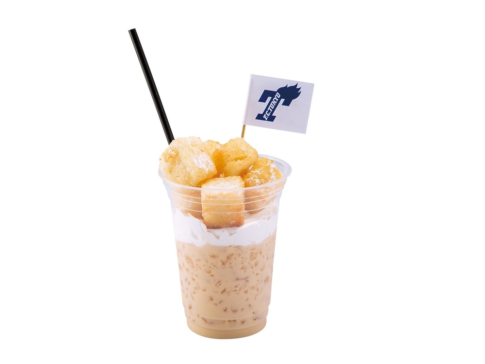 「パセラ」名物のハニトーを一口サイズのシュガーハニトーに!キャラメルミルクの上にのせた、本日限定のスイーツドリンクです!この他、「東京ドロンパ×ハニトンコラボクッキー」の販売や、購入者特典としてオリジナルシールのプレゼントなどもご用意しています。