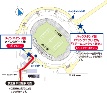バッグ側:ファンクラブU-20、5ゲームスチケット販売所(白いチケットボックス)