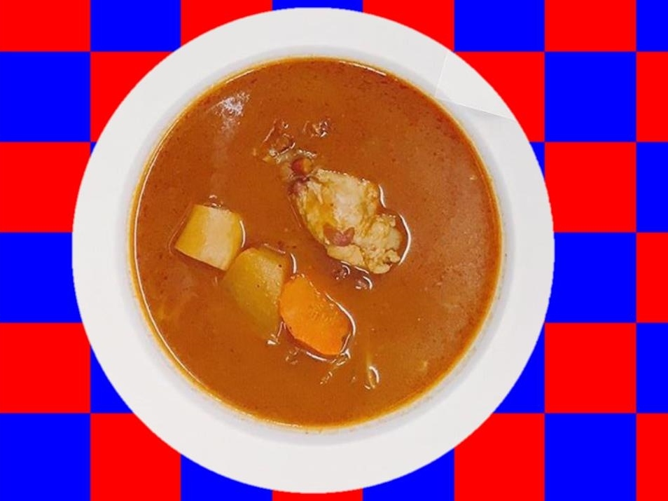 骨付き鶏、ごろっと野菜、スパイスはなんと36種も入った本格派カレーです。美味しい食材をギュッと詰め込みました。