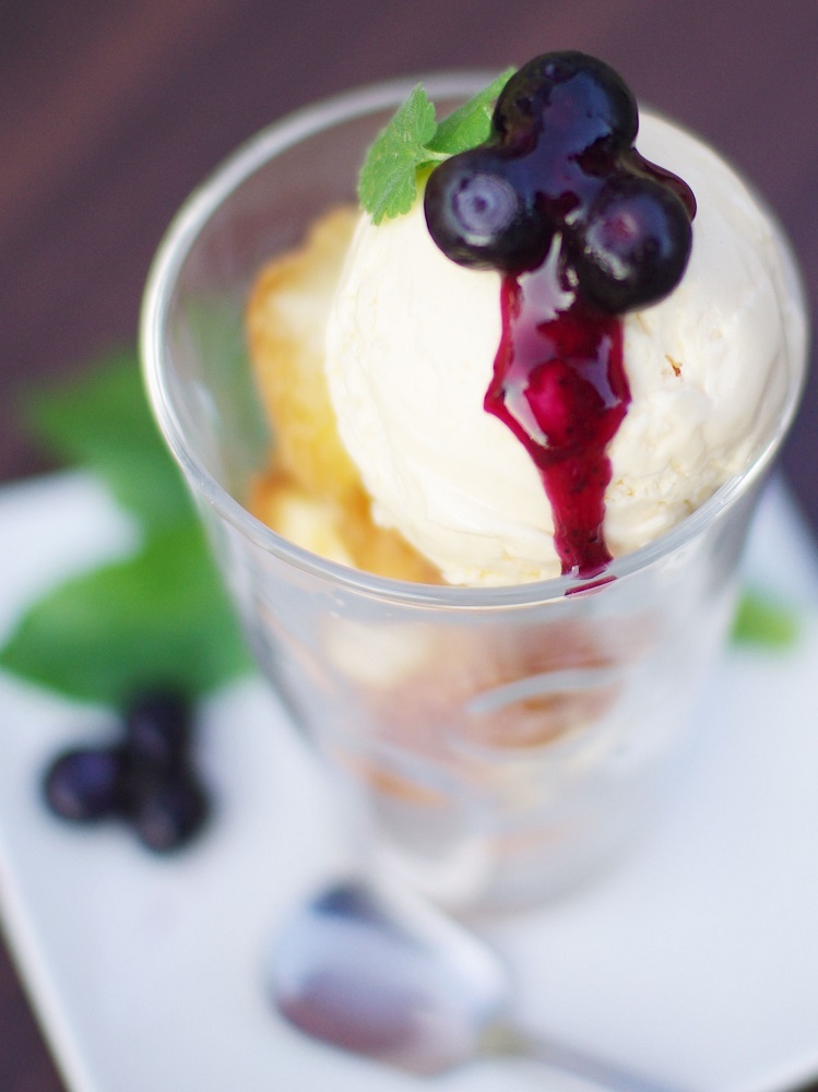 サーターアンダギーにお好みのアイスをのせて、パフェにしました ボリューム感のあるスイーツです。