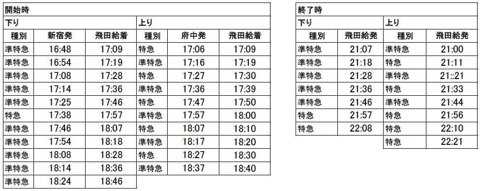 下り…飛田給発21:07~22:08の特急・準特急/計7本