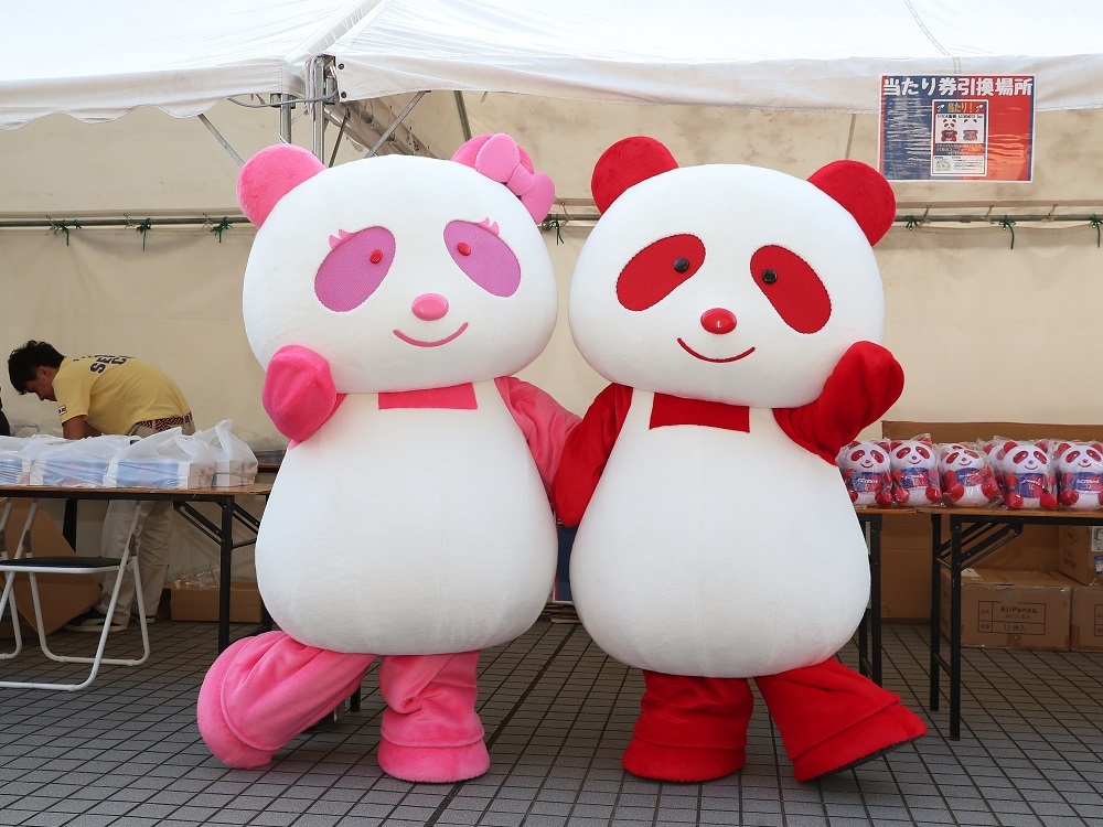 味の素(株)のキャラクター「アジパンダ®」と「アジパンナ®」がグリーティングを行います。