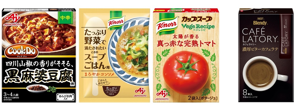 一緒に「Cook Do® あらびき肉入り黒麻婆豆腐用 中辛」「クノール® たっぷり野菜で満たされたいときのスープごはん用 まろやかコンソメ」「クノール® カップスープ ベジレシピ 太陽が香る真っ赤な完熟トマト(2袋入)」のいずれか1つと、「ブレンディ® カフェラトリー® スティック 濃厚ビターカフェラテ8本」を1つをプレゼントいたします。