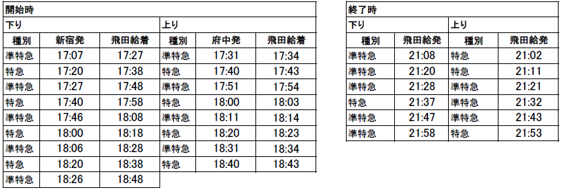 下り…飛田給発21:08~21:58の特急・準特急/計6本