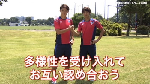 FC東京の室屋成選手、太田宏介選手が出演する人権啓発映像をスタジアム内の大型映像機にて放映します。