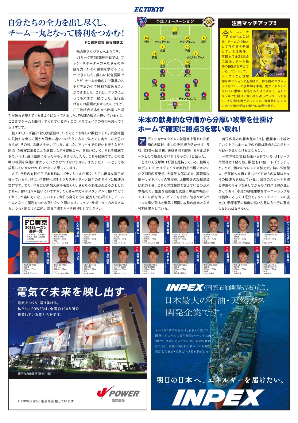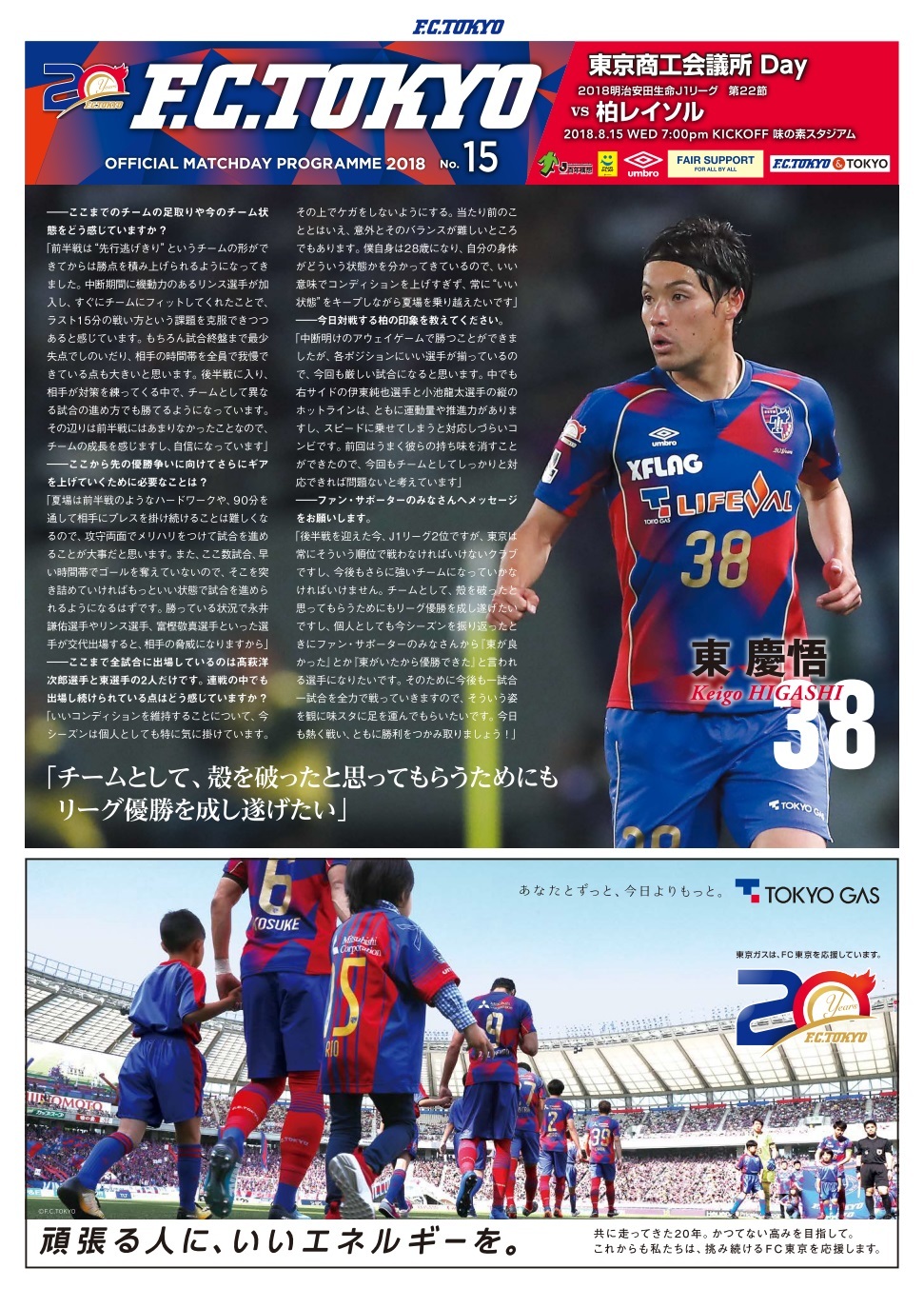 □オフィシャルマッチデープログラム2018 No.15(表紙:東慶悟選手)