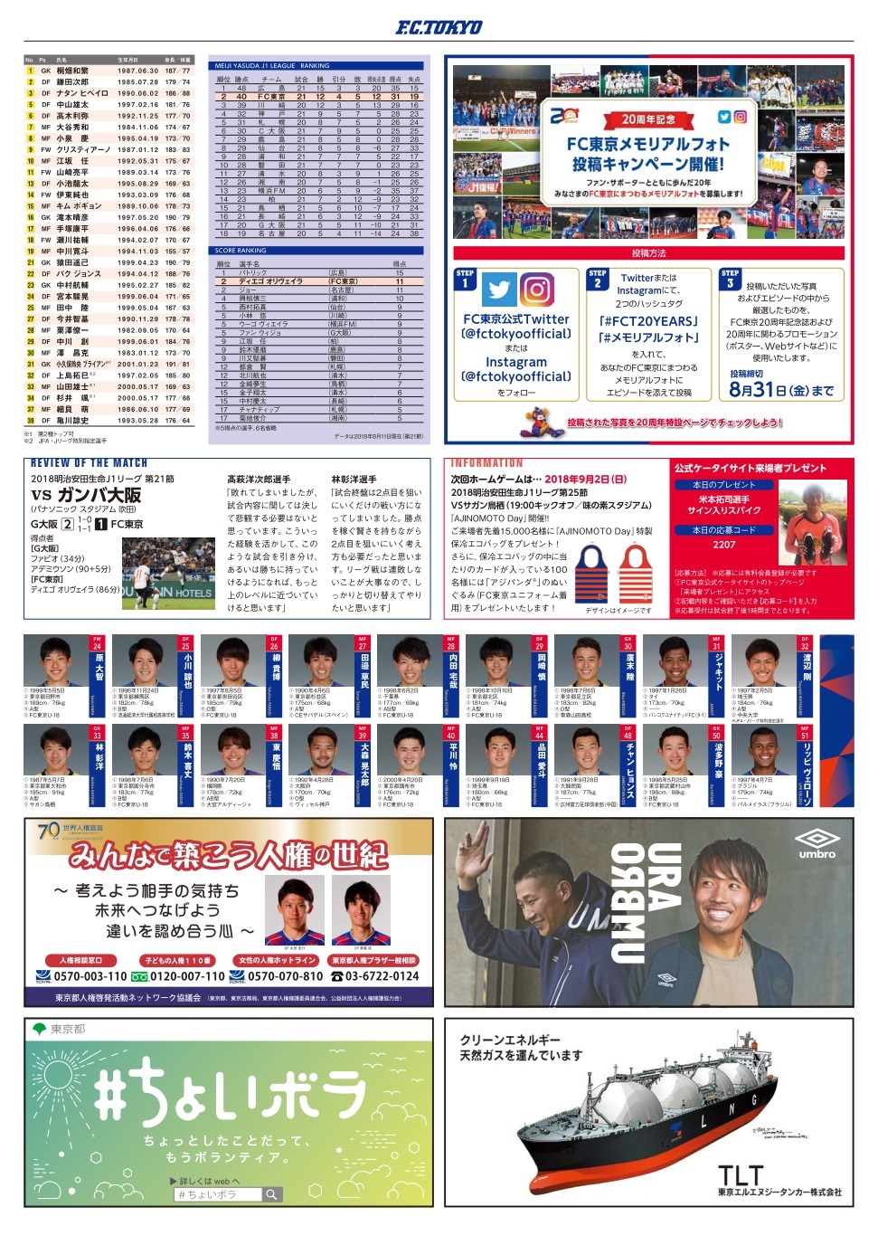 8/15(水)2018明治安田生命J1リーグ第22節vs柏レイソル(19:00キックオフ/味の素スタジアム)のオフィシャルマッチデープログラムについて、下記のとおりご案内いたします。