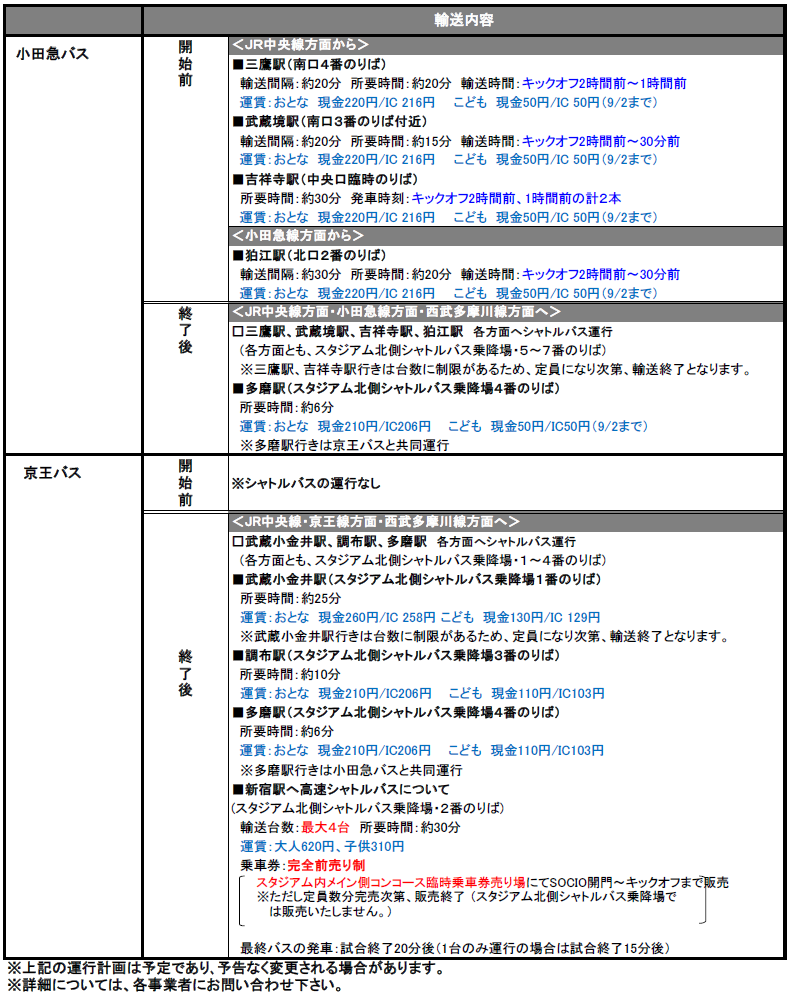 9/2(日)2018明治安田生命J1リーグ第25節vsサガン鳥栖(19:00キックオフ/味の素スタジアム)にて運行されるシャトルバス・路線バスについてご案内いたします。