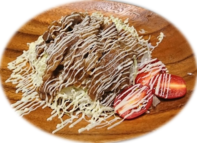 ご飯の上に甘辛いタレで炒めた薄切り肉と生野菜を乗せ、仕上げにマヨネーズをシかけた佐賀のB級グルメ!シシリアンライス!サガン鳥栖戦限定メニューです!(限定20食