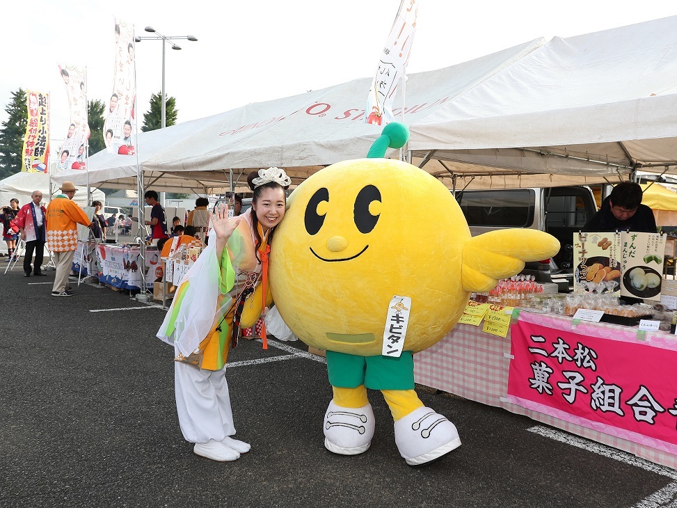 福島県のマスコットキャラクター「キビタン」も観光PRブースに登場。