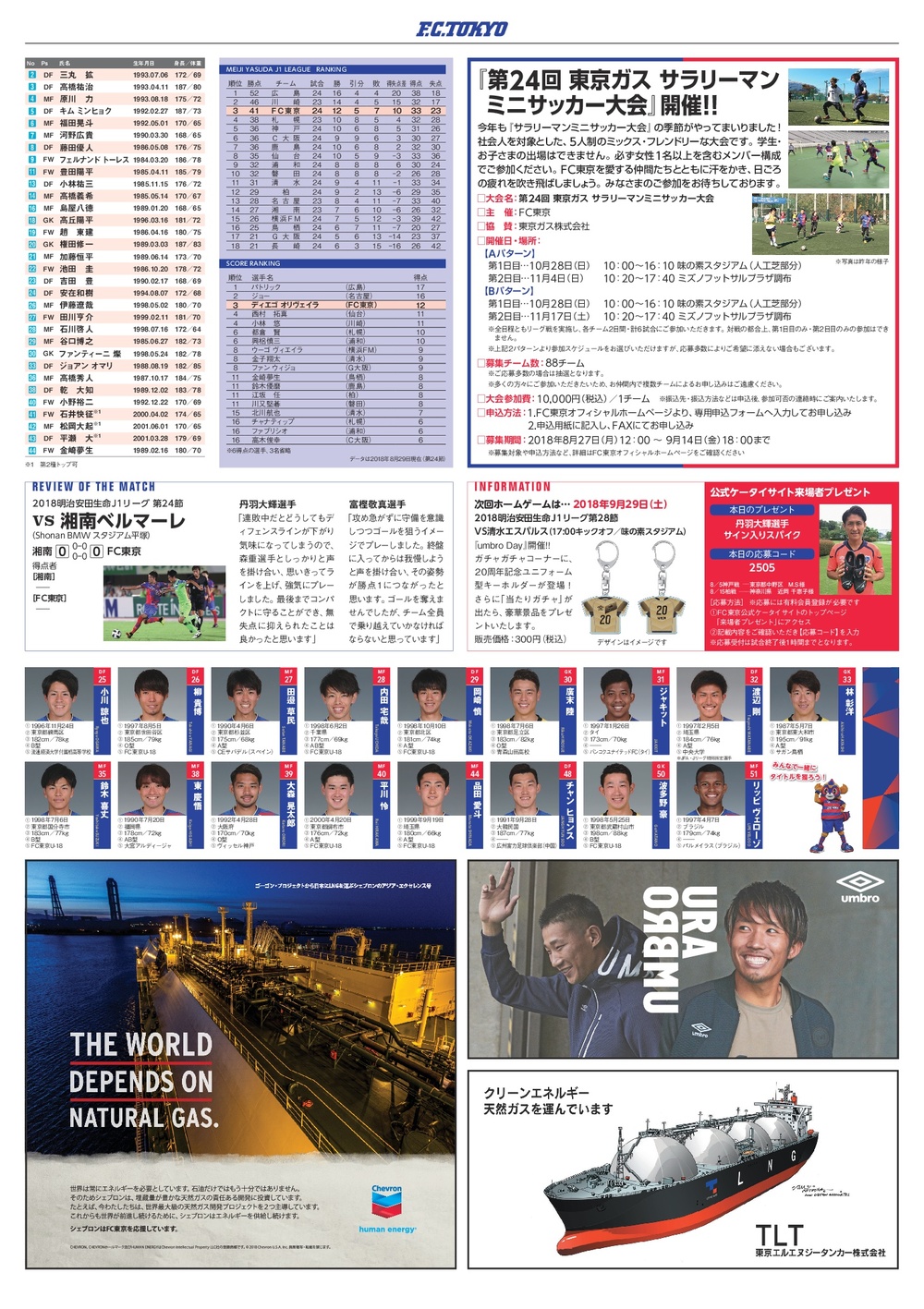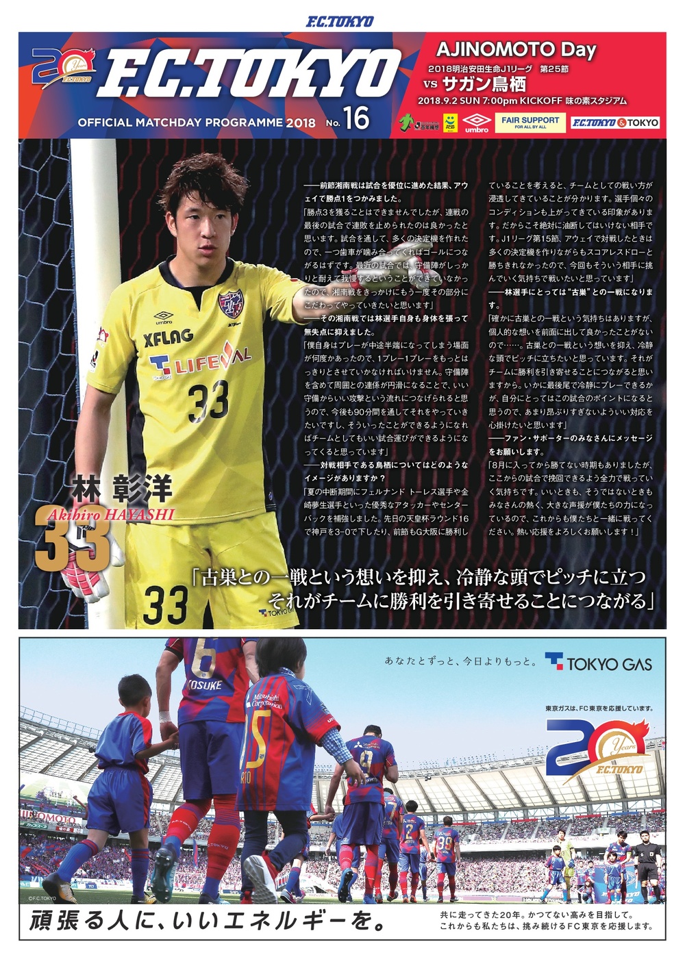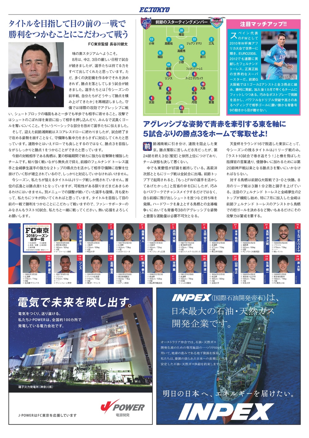 9/2(日)2018明治安田生命J1リーグ第25節vsサガン鳥栖(19:00キックオフ/味の素スタジアム)のオフィシャルマッチデープログラムについて、下記のとおりご案内いたします。