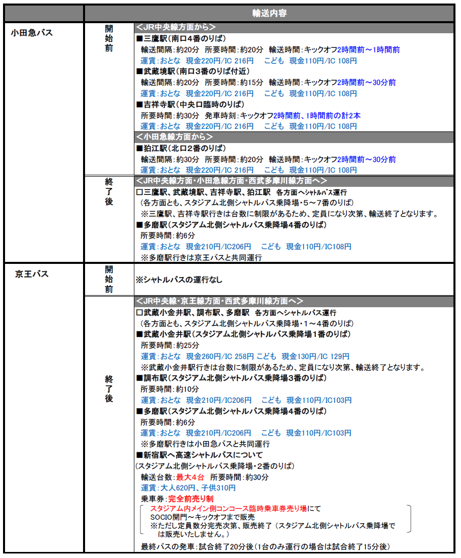 9/29(土)2018明治安田生命J1リーグ第28節vs清水エスパルス(17:00キックオフ/味の素スタジアム)にて運行されるシャトルバス・路線バスについてご案内いたします。
