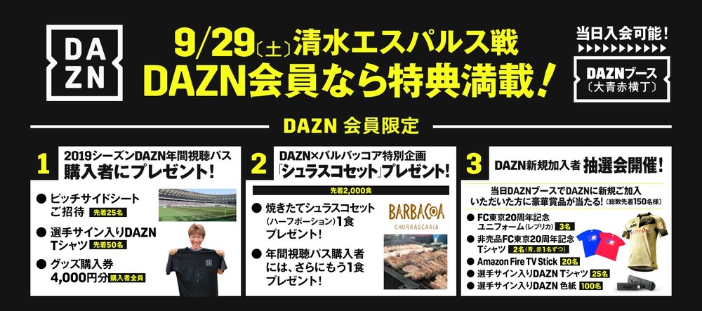 ・選手サイン入りDAZN Tシャツプレゼント!(先着50枚)