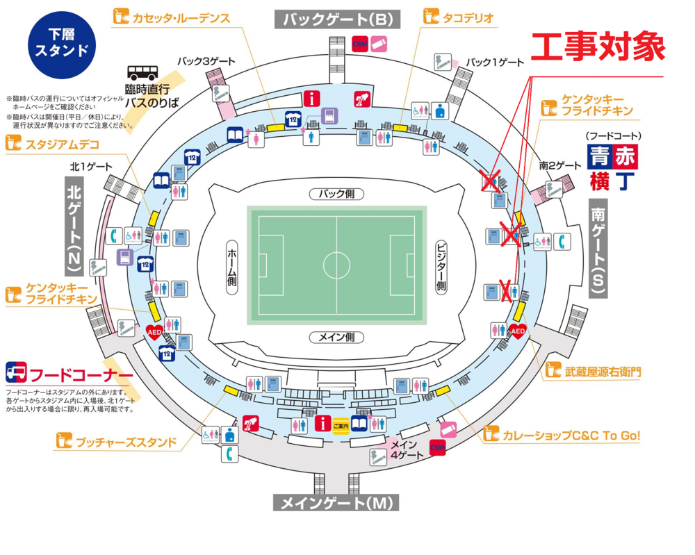 今後各ホームゲームによって一部使用できないエリアや場所が出てきますので、決まり次第みなさまには情報を発信していきます。