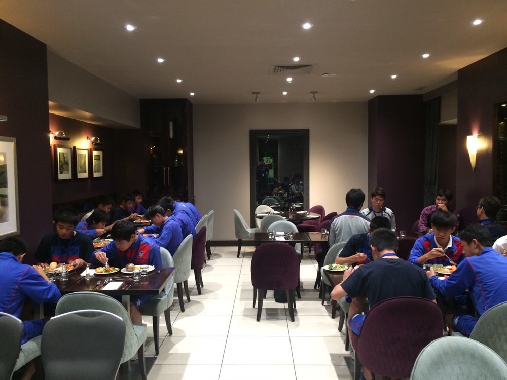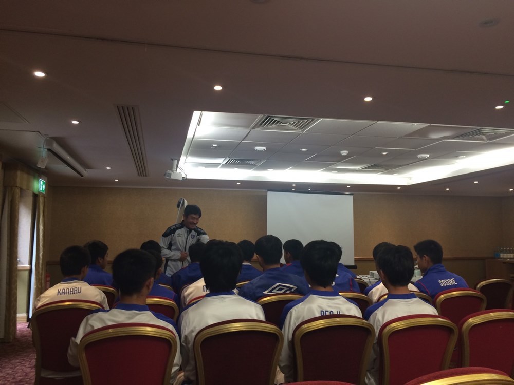 大会前日となるこの日は、ホテルで戦術ミーティングを行ってチーム全体の戦術理解度を高める。ミーティングを終えると、フルハムFCのグランドでトレーニングを実施した。