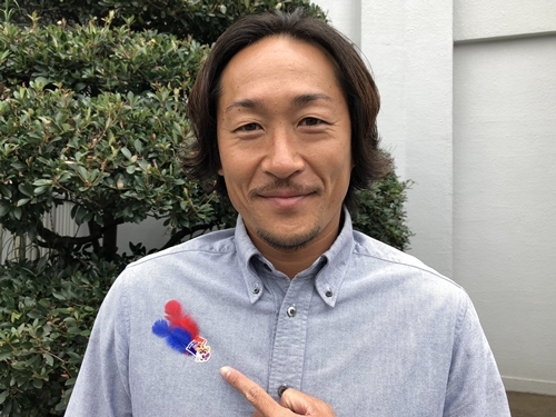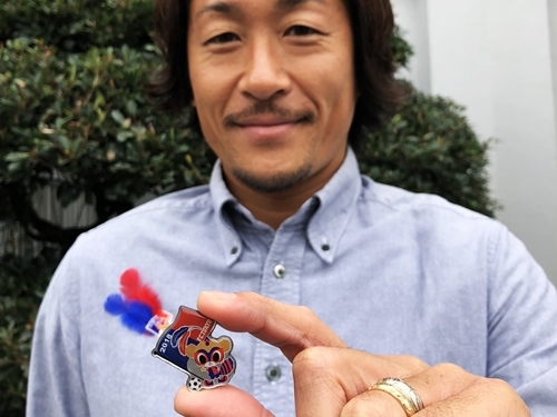 東京ドロンパと青赤の羽根がデザインされたオリジナルピンバッジを販売いたします。ピンバッジの売り上げから製作費等を除いた全額を、赤い羽根共同募金へ寄付いたします。