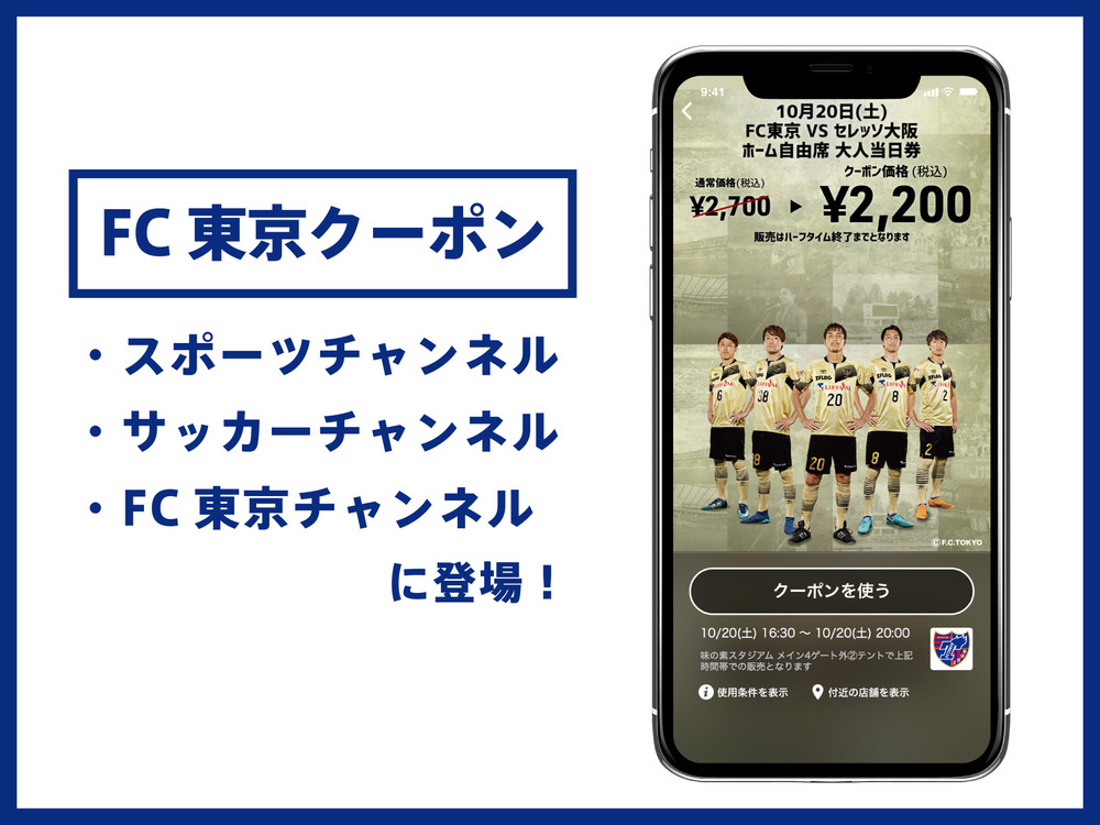 SmartNewsの「スポーツチャンネル」、「サッカーチャンネル」、「FC東京チャンネル」に“FC東京クーポン”が登場!クーポンの提示で10/20(土)セレッソ大阪戦の当日券が500円引きにて購入いただけます。