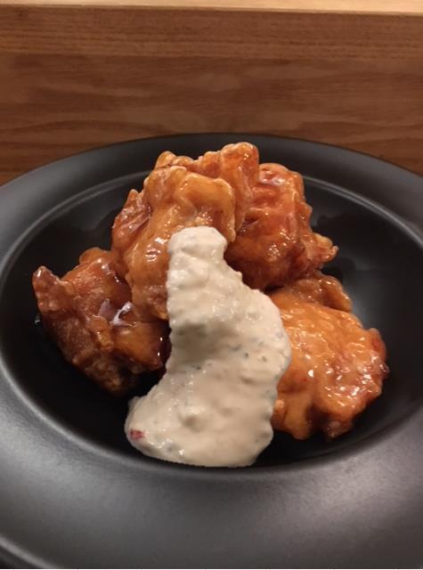 「関西風甘酢だれ」と「タルタルソース」の組み合わせが絶品。ジュワッと広がる肉汁、甘酢とタルタルの旨さに感動必至!