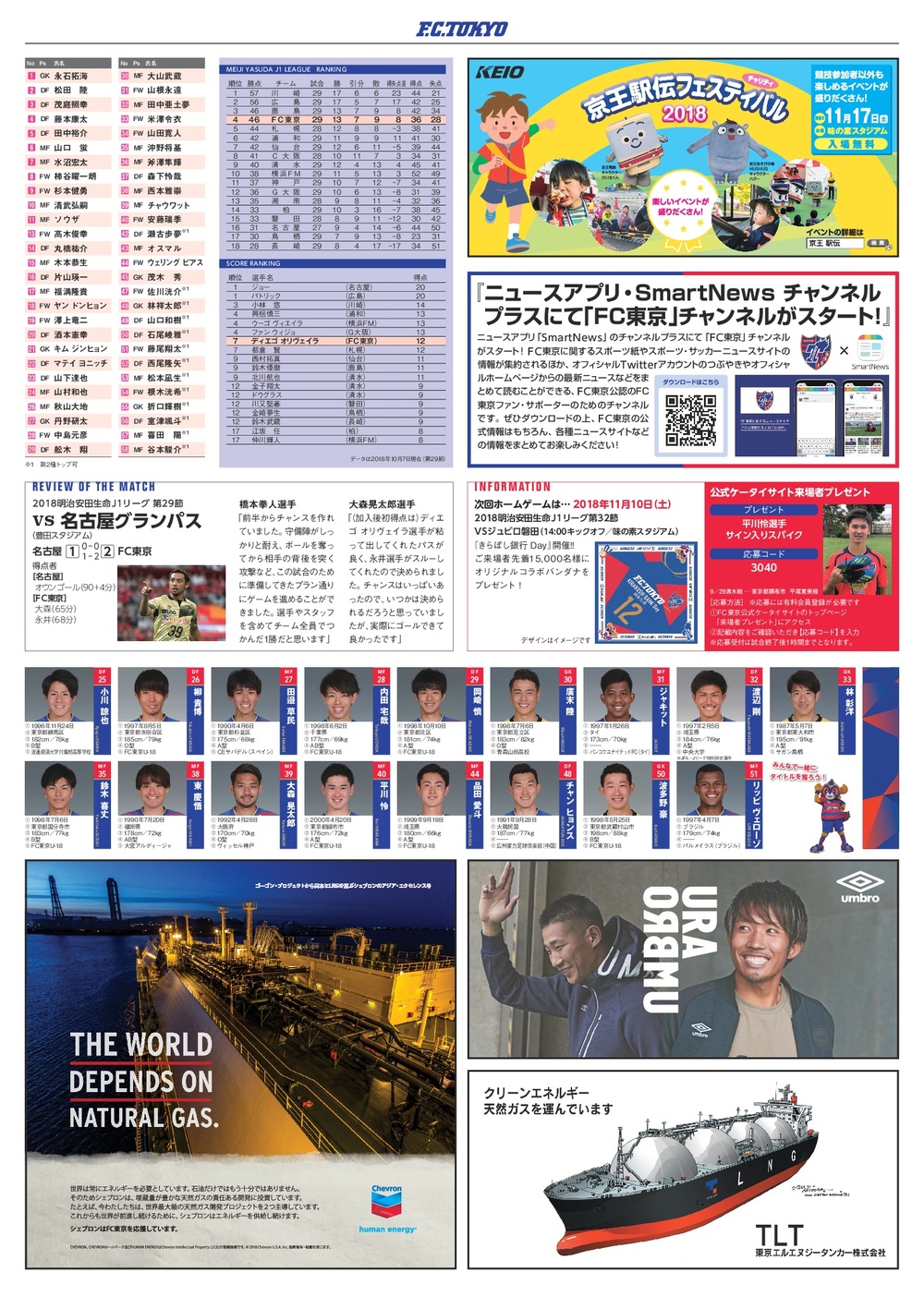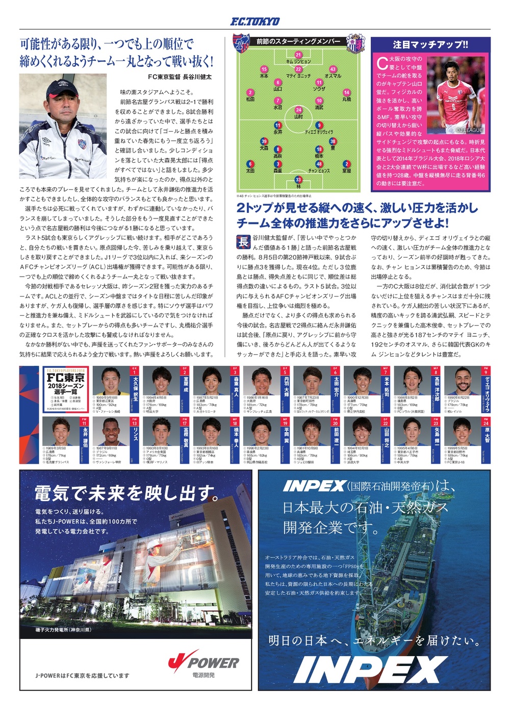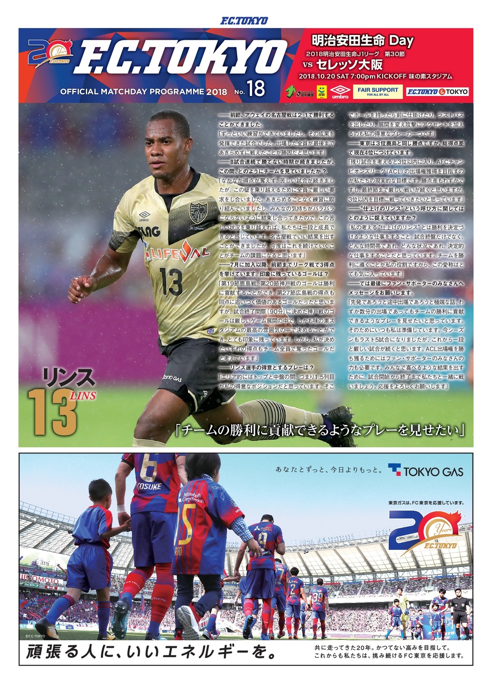 10/20(土)2018明治安田生命J1リーグ第30節 vs セレッソ大阪(19:00キックオフ/味の素スタジアム)のオフィシャルマッチデープログラムについて、下記のとおりご案内いたします。