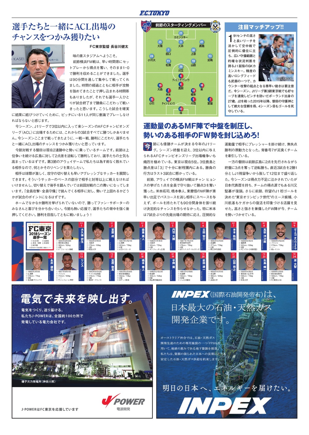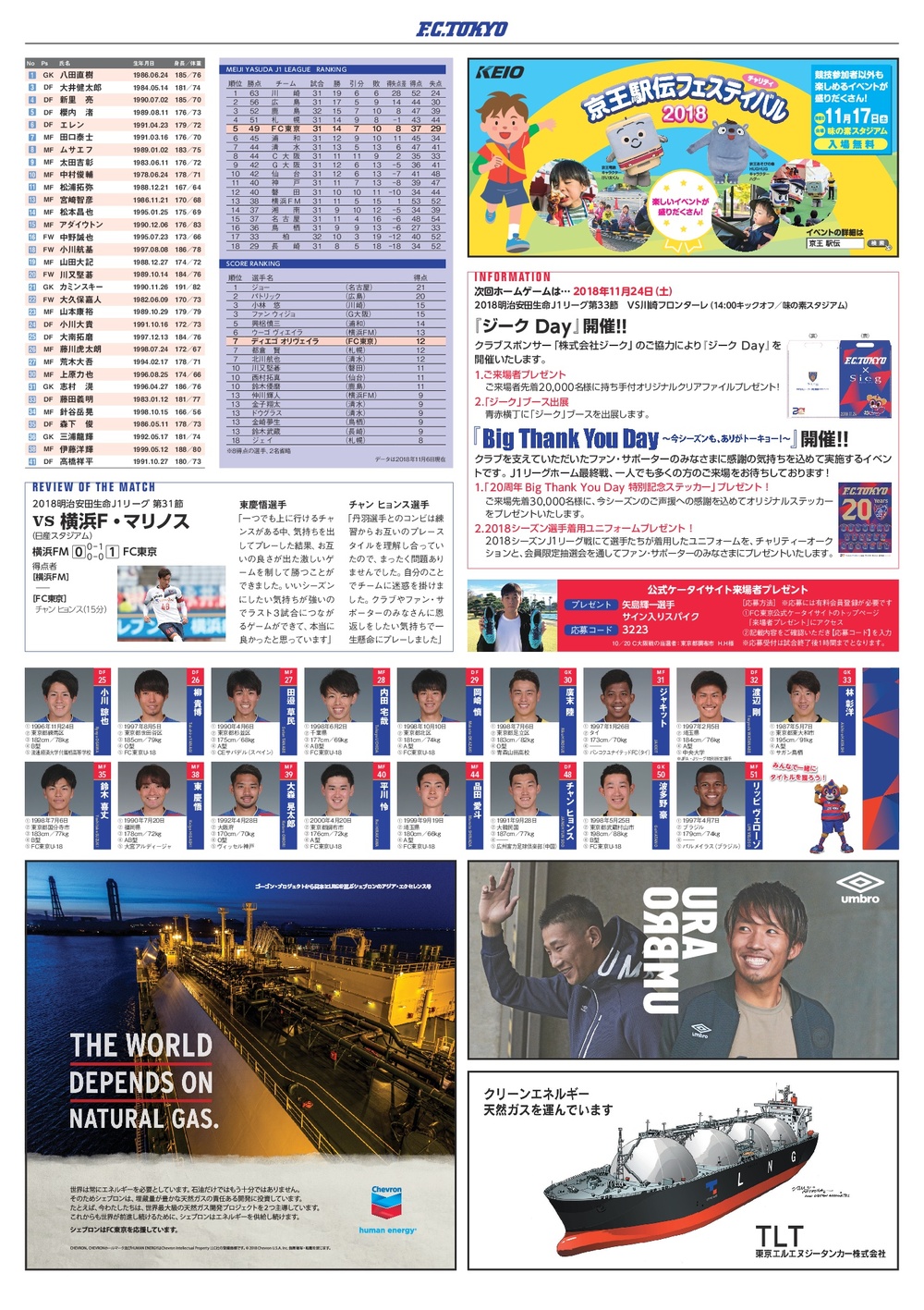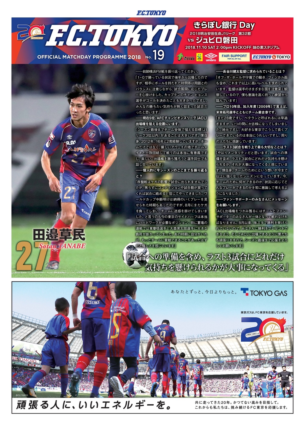 11/10(土)2018明治安田生命J1リーグ第32節 vs ジュビロ磐田(14:00キックオフ/味の素スタジアム)のオフィシャルマッチデープログラムについて、下記のとおりご案内いたします。