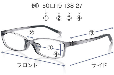 ③最後に表記されている数値はテンプル(サイド部分)の長さになります。