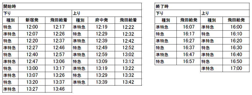 下り…飛田給発16:07~16:57の特急・準特急/計6本