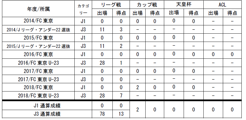 □出場記録(2018年11月21日現在)