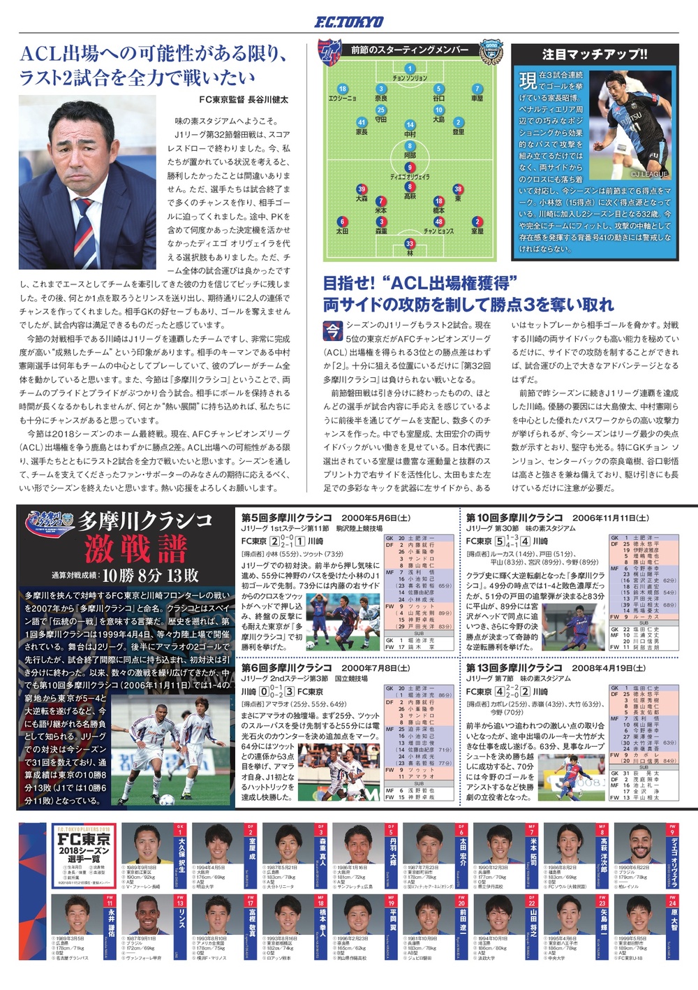 11/24(土)2018明治安田生命J1リーグ第33節 vs 川崎フロンターレ(14:00キックオフ/味の素スタジアム)のオフィシャルマッチデープログラムについて、下記のとおりご案内いたします。