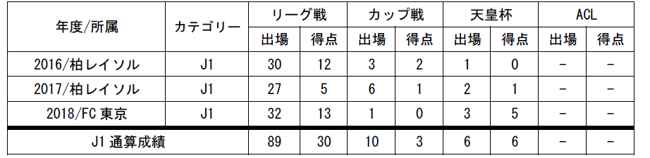 □出場記録(2018年12月6日現在/国内クラブ所属時のみ)