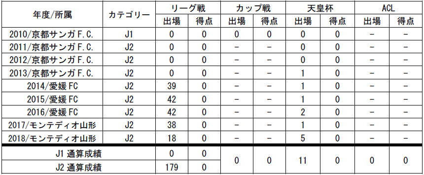 ※ 2009年に関西大学として天皇杯2試合出場0得点