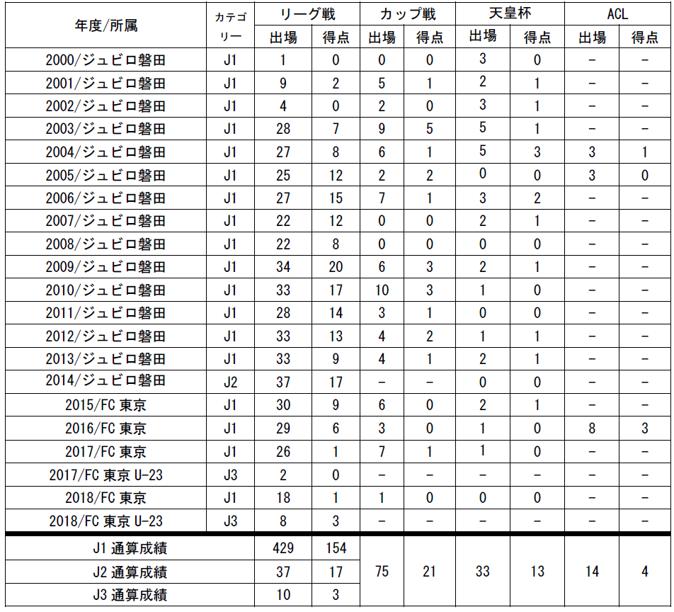 □出場記録(2018シーズン終了時点)