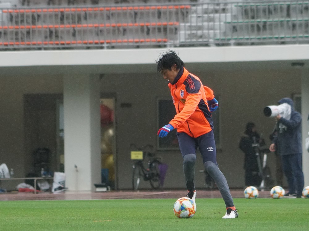 強い雨風のなか、選手たちは積極的に練習に取り組んだ。