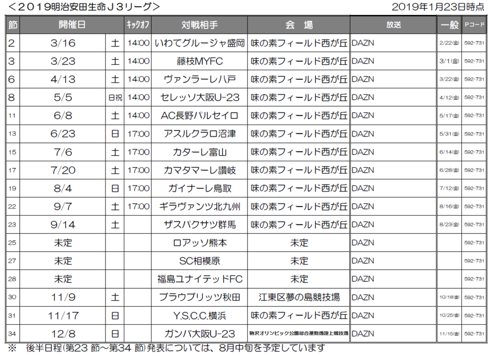 2020明治安田生命J3リーグホーム開幕カード決定!