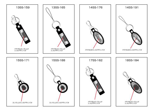 ※販売時期によって形状が異なりますが、「レザーキーホルダー」「レザーストラップ」にて販売しております。